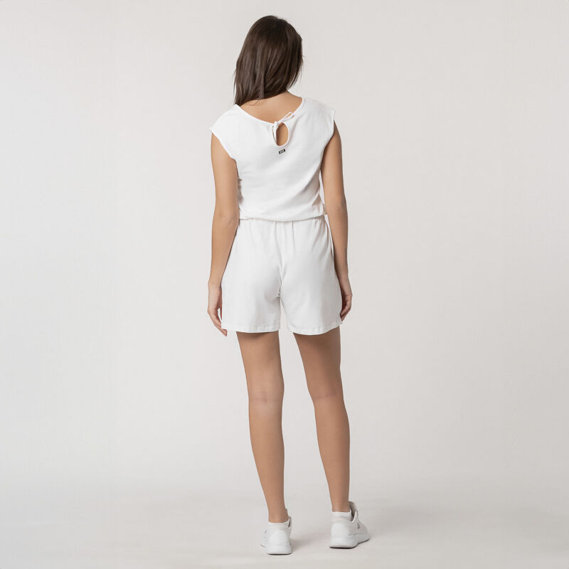 Kombinezon Adelyn je izdelan iz visokokakovostnega italijanskega bombaža, ki zagotavlja udobje in zračnost. S kratkimi hlačnicami in razporki na strateških mestih je ta kos oblačila popoln za poletne dni. Zavezovanje na hrbtu omogoča prilagajanje telesu, stranski žepi pa praktično shranjevanje. Ne pozabimo poudariti elegantnega logotipa ZOE in srca na sprednji strani, detajlov, zaradi katerih je ta kombinezon popolnoma neustavljiv.