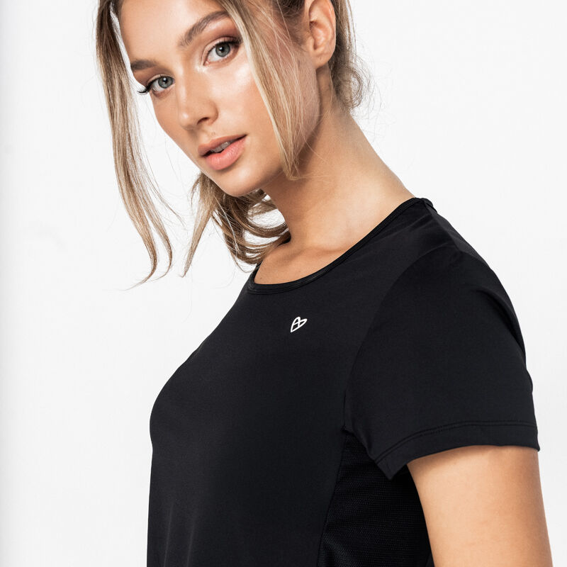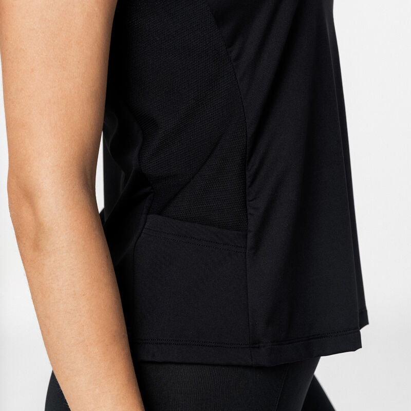 Artica majica s kratkimi rokavi – lahka, zračna in ustvarjena za gibanje! Stranski mrežasti vložki in zračen material omogočajo, da koža diha, majhen žep na strani pa je ravno pravšnji za ključ ali telefon, ko si na poti. Artica majica se poda k vsemu – od pajkic do kavbojk – in ima tisti brezčasni kroj, po katerem vedno znova posežeš v omari.