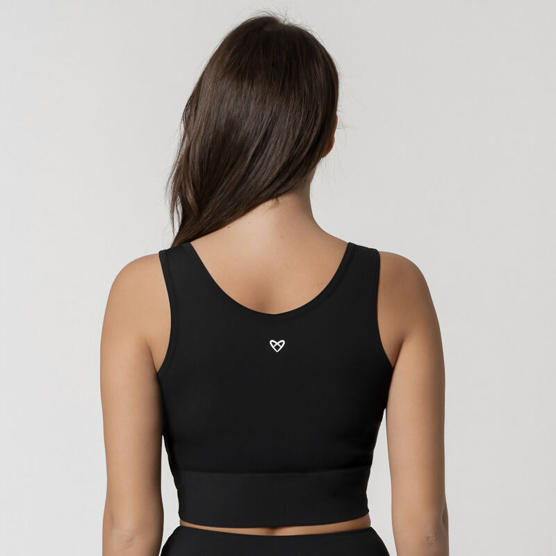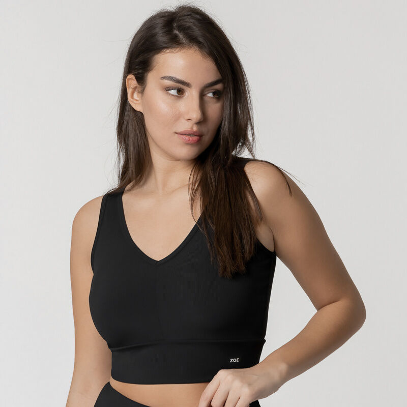 Top Beau ima raztegljivo tkanino, ki se nežno prilega telesu in omogoča svobodno gibanje. Atraktiven in ženstven "v" izrez spredaj in zadaj je pravi hit v športnem dizajnu. Izstopajoč ZOE logotip na sprednji strani in srce na zadnji strani mu dodajata poseben čar. Na voljo je v klasični črni barvi, ki se lahko brez težav kombinira z različnimi oblačili. Top Beau je namenjen vsem ženskam, ki iščejo popolno kombinacijo udobja, stila in funkcionalnosti v svoji športni garderobi.
