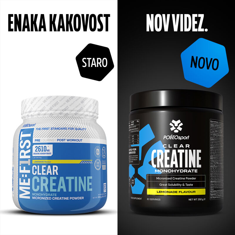 Me:First Clear Creatine Monohydrate ruši mite. Kreatin ni ustvarjen za napihovanje mišic, temveč za izboljšanje treninga in dodatno moč mišicam. Prav tako je kreatin dodatek za vse – ženske, moške, profesionalce, amaterje, rekreativne športnike, mlade in stare, saj vsi potrebujejo dodatno energijo!