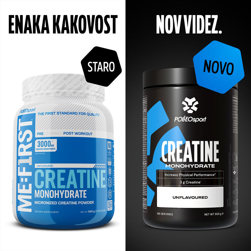 Zaradi tega je tukaj Me:First kreatin monohidrat! Vsebuje 100% kreatin monohidrat, ki povečuje telesne zmožnosti pri zaporednih kratkotrajnih visoko intenzivnih vajah. Pozitiven učinek kreatine se doseže z dnevnim vnosom 3g, kar je hkrati tudi priporočena dnevna doza. Prav tako je dokazano, da lahko kreatin izboljša učinek treninga moči na mišično moč pri osebah starejših od 55 let. Pozitiven učinek se tudi tukaj doseže z dnevnim vnosom 3g kreatina, ob izvajanju trenina moči minimalno trikrat tedensko, z intenziteto min. 65-75% največje obremenitve pri enem ponavljanju.