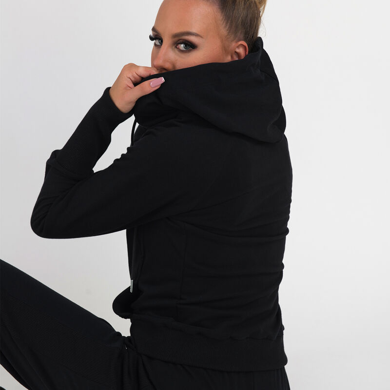 Tako kot mala črna obleka je tudi črna jopa s kapuco klasika, ki bi jo morala imeti v svoji garderobi vsaka modno ozaveščena dama! Za odhod na trening, sprehod ali priložnostno obleko za v službo - s Kaya hoodie ne more zgrešiti, saj jo je zelo enostavno kombinirati z drugimi kosi oblačil. Je idealna izbira za vse, ki pri nakupu oblačil dajejo prednost funkcionalnosti in udobju.