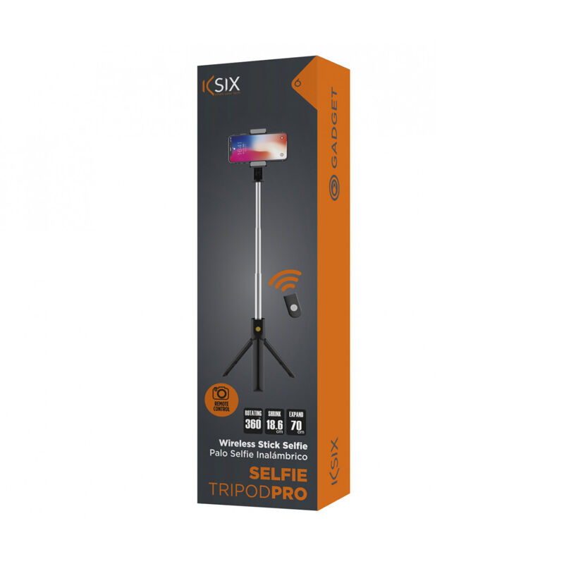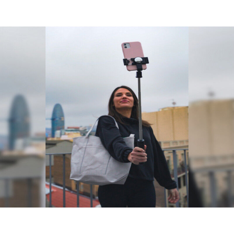 Selfie Pro je hkrati trinožnik in selfie palica. Njegov odstranljiv daljinski upravljalnik Bluetooth vam omogoča zajemanje slik z večje razdalje. Združljiv z iPhonom in Androidom.