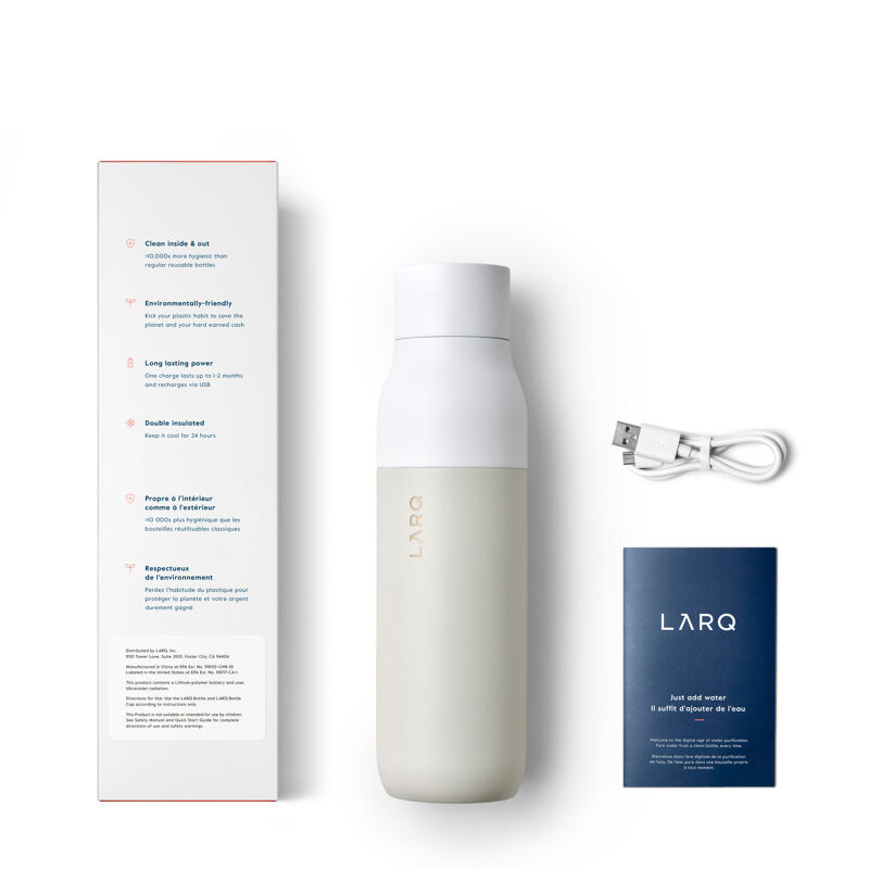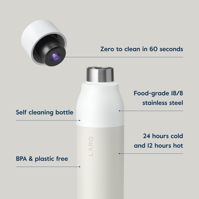 LARQ Steklenica PureVis™ je prva samodejno čistilna steklenica in sistem za prečiščevanje vode na svetu. Uporablja PureVis tehnologijo za odstranjevanje do 99%* bioloških onesnaževalcev, kot je E. coli, iz vaše vode in steklenice.