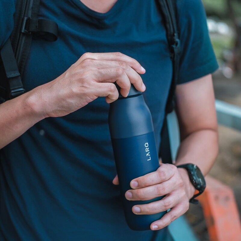 Ali greš na sprehod ali pa se pripravljaš na dolgo potovanje? Steklenica LARQ PureVisTM je oblikovana za sodobne avanturiste! Izberi Normalen ali Avanturističen način delovanja in uživaj v naravni (sladki) vodi: UV-C spekter sončne svetlobe se odbija od zglajene notranje stene steklenice ter tako čisti tako vodo kot tudi steklenico od 99,99999 % bakterij, virusov in plesni. Naj bo to na pohodu ali sredi sestanka, s steklenico LARQ PureVisTM ne boš žejen!