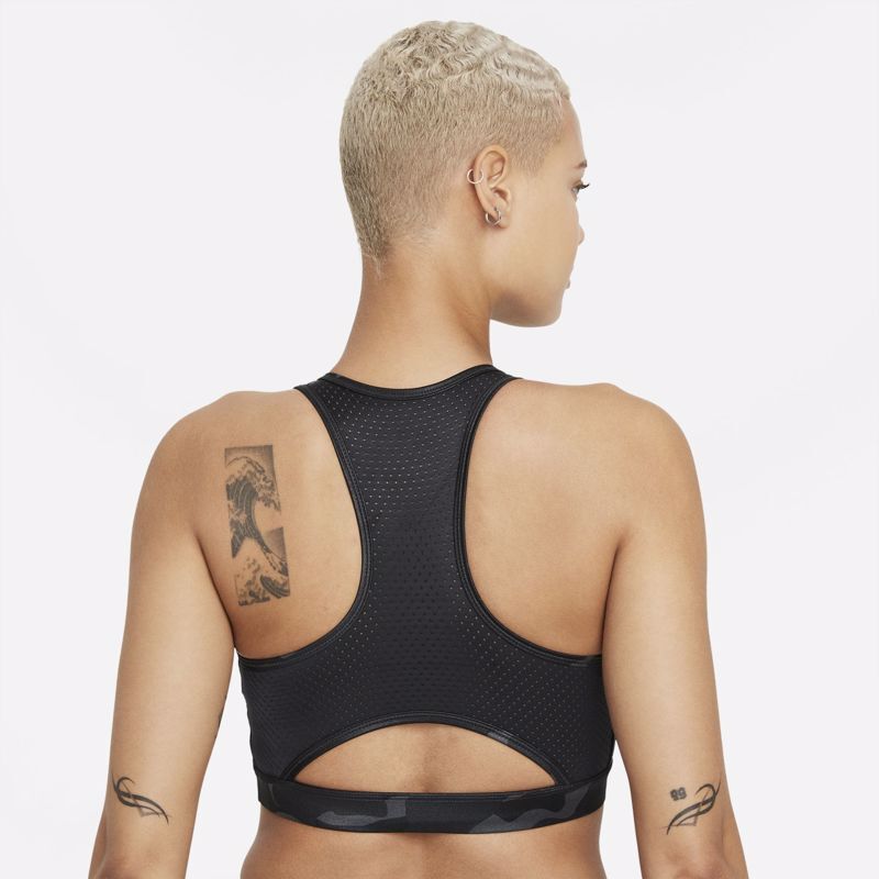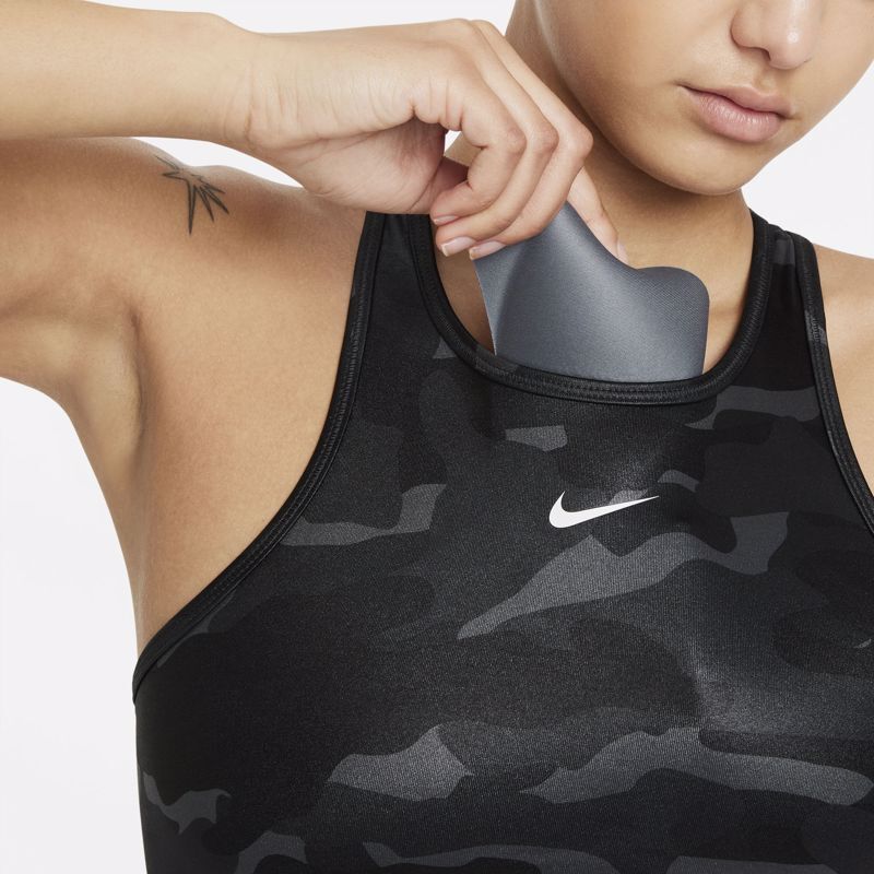 With wide, comfy straps in a high-neck design, the Nike Dri-FIT Swoosh Sports Bra feels snug and secure while you move. Smooth, lightweight fabric wicks sweat to keep you dry, comfortable and focused. For every rep, step and jump—know that you’re supported.