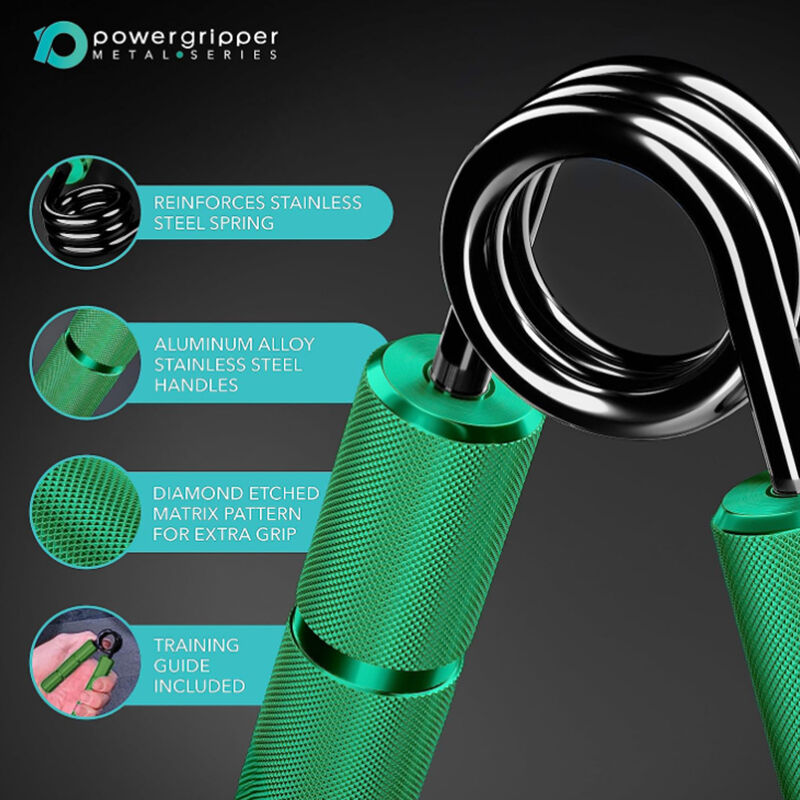KAKOVOST IZDELAVE - PowerGripper kovinski griperji imajo ojačane vzmeti iz nerjavnega jekla s črno mat anodizirano obdelavo. Vsak griper ima lastnost lepo obarvanega ročaja z diamantnim vrezanim vzorcem za dodatni oprijem.