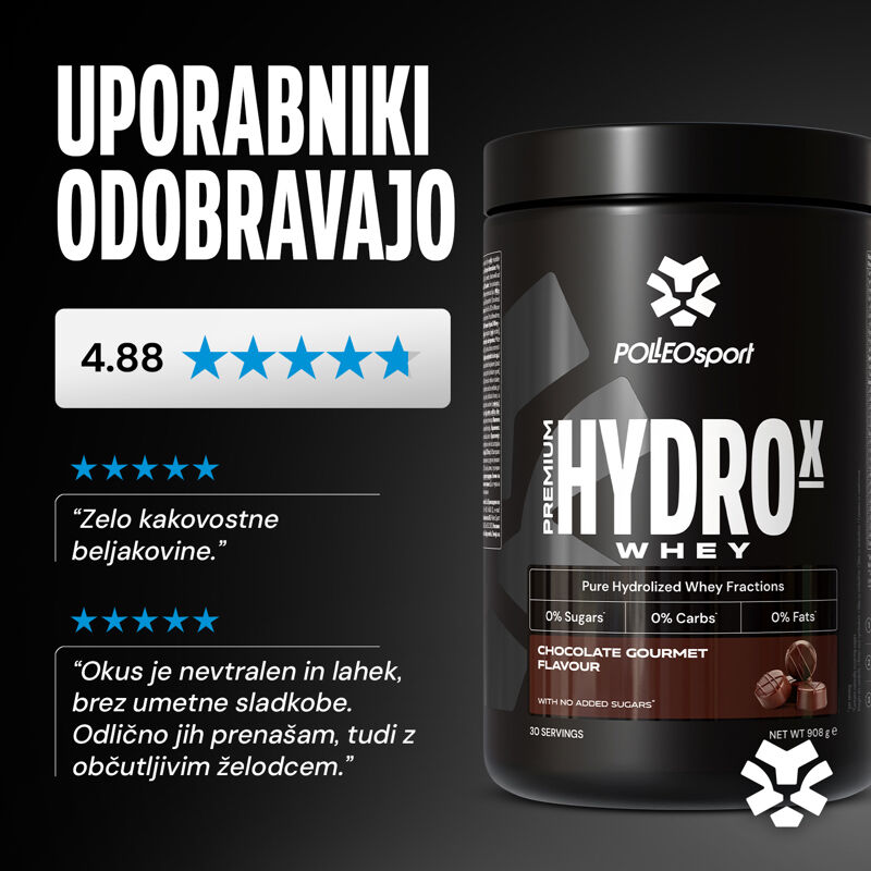 Iz raznovrstne Me:First družine je tukaj še en izmed najboljših whey proteinov – Premium Hydrowhey. Premium Hydrowhey je res edinstven, saj v 30g vsebuje 0% ogljikovih hidratov, sladkorja in maščob. Govorimo o proteinu visoke biološke vrednosti, ki je narejen iz kvalitetne Supreme proteinske mešanice..