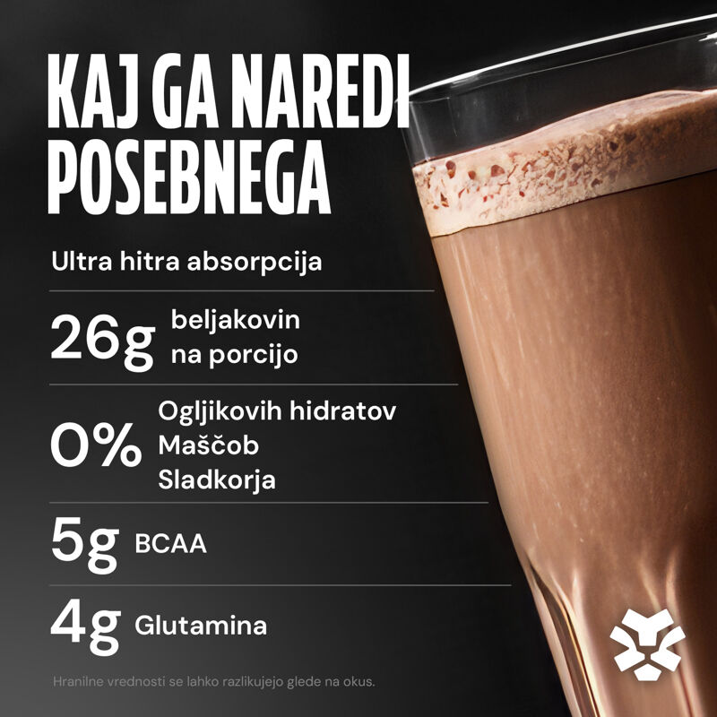 SI Premium Hydrowhey - sirotkine beljakovine v prahu Sestavine: Supreme mešanica sirotkinih beljakovin {izolat SIROTKINIH beljakovin [iz mleka, emulgator (sojin lecitin)]}, hidrolizat SIROTKINIH beljakovin (iz mleka), gostilo (celulozni gumi). Alergeni: Lahko vsebuje sledi jajc, listne zelene, sulfitov, rib, rakov in oreščkov. Navodila za uporabo: Nalijte 200 ml vode ali mleka v shaker, dodajte 1 vrečico (30 g) prahu, dobro pretresite in konzumirajte po treningu. Shranjevanje: Hraniti na hladnem in suhem mestu, zaščiteno pred direktno sončno svetlobo, pri temperaturi do 25 °C. Uporabno najmanj do konca / LOT broj: Odtisnjeno na embalaži.