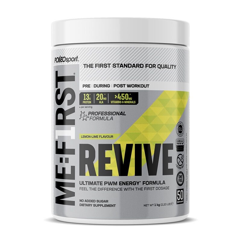 Vaše telo se po intenzivnem treningu počuti neuravnoteženo, ter izčrpano. Kar potrebuje v tistem trenutku je kvalitetno in hitro okrevanje. Z analizo profesionalnih športnikov, kot tudi aktivnih posameznikov, so Me:First posamezniki ustvarili novo rešitev, ki bo pripomogla pri okrevanju – Revive! Edinstvena formula pazljivo izbranih vitaminov, mineralov, aminokislin in drugih pomembnih sestavin, ki bodo doprinesli k vašemu energijskemu statusu!