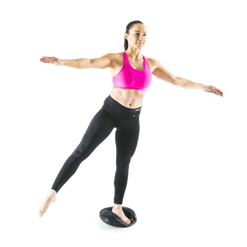 Izdelan iz vzdržljivega PVC materiala, Stabilnostni zračni jastuk ima teksturirano površino, ki zagotavlja odličen oprijem in preprečuje zdrse med vašim treningom.