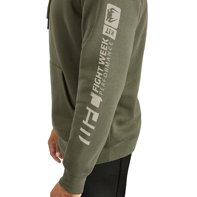 UFC Adrenaline by Venum moška Fight Week pulover majica s kapuco vključuje detajle z logotipom Venum in UFC na prsih, ramenih in dolžini levega rokava. Njene umirjene barve zagotavljajo sproščen stil športnikom med napredovanjem skozi Fight Week.