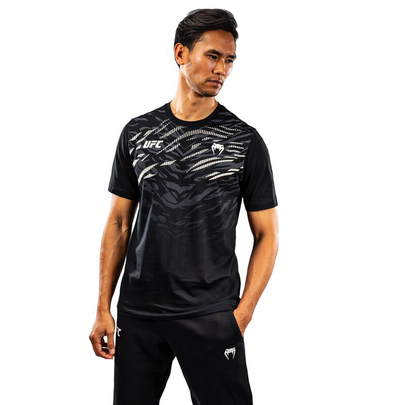 Navdihnjena z oblačili UFC borcev, kolekcija UFC Fusion by Venum Replica je idealna za oboževalce in borce. Dinamičen živalski vzorec v kolekciji spodbuja povezovanje z najglobljimi instinkti, potrebnimi za zmago. Na voljo v treh barvah, ta moška majica klasičnega kroja se popolnoma ujema z drugimi izdelki iz kolekcije.