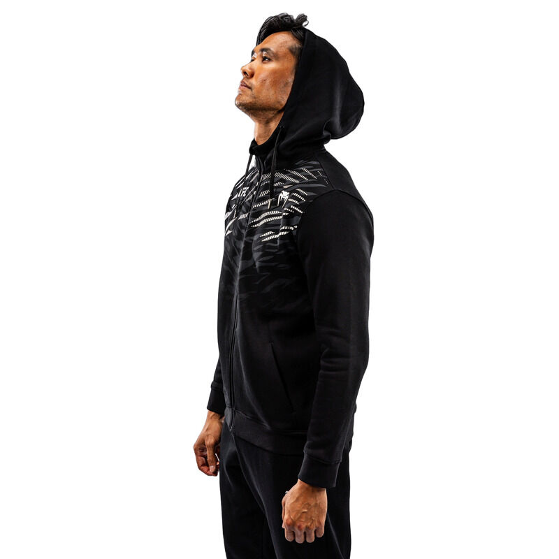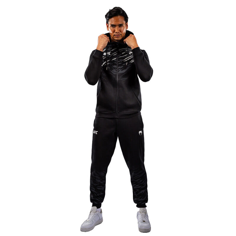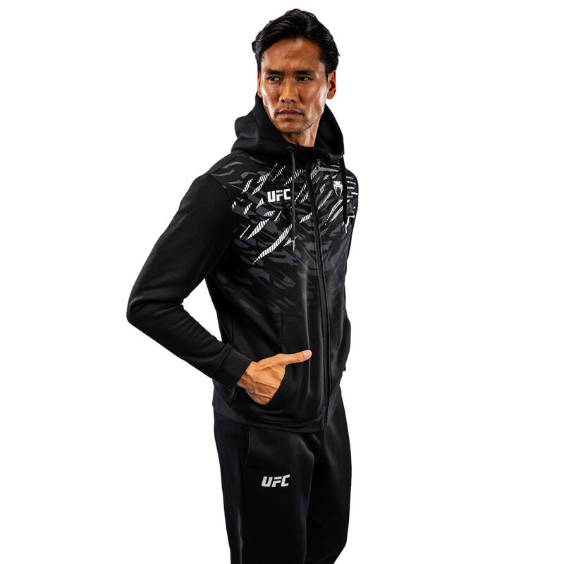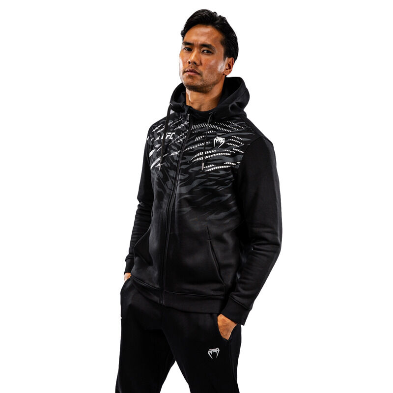 Navdihnjena z oblačili UFC borcev, kolekcija UFC Fusion by Venum Replica je popolna za oboževalce in borce. Dinamičen živalski vzorec v kolekciji spodbuja povezovanje z najglobljimi instinkti za zmago. UFC Fusion by Venum moški replica zip hoodie ima odprte stranske žepe in kapuco z vrvico. Detajli z logotipi Venum in UFC so nameščeni na prsih in kapuci. Na voljo v dveh barvah, odlično se ujema z drugimi izdelki iz kolekcije.