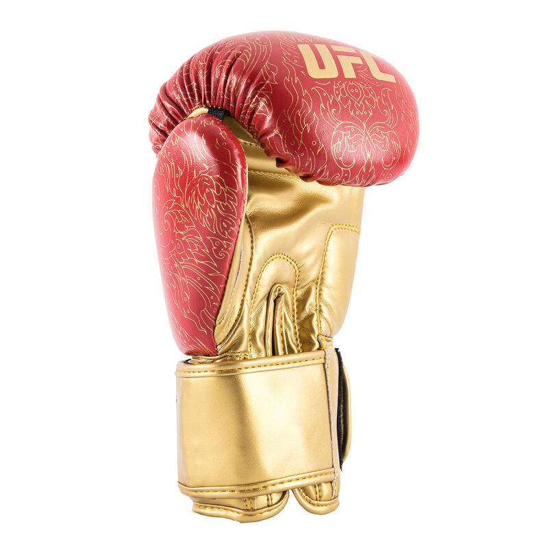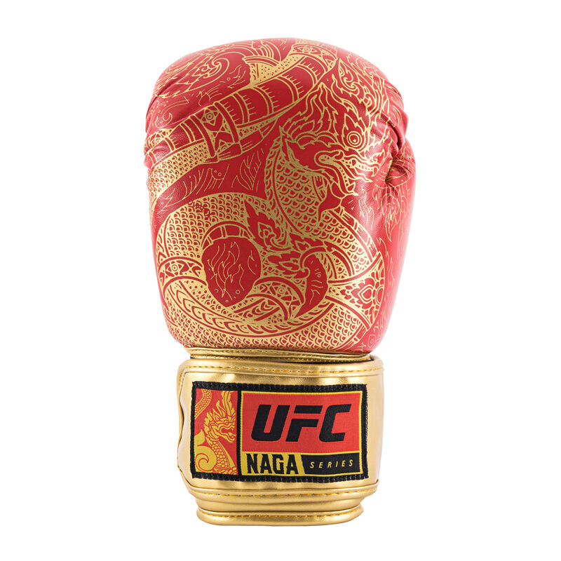 UFC PRO Naga rokavice za trening so del posebne kolekcije oblikovane v osrčju Tajske, navdihnjene za čast i n poklon taj ski dediščini mešanih borilnih veščin. Ta usnjena rokavica razreda A ima več kot 1 " večplastno zaščito iz EVA pene, varen sistem pasov, tkanino, ki odvaja vlago in ohranja roke hladne in suhe.