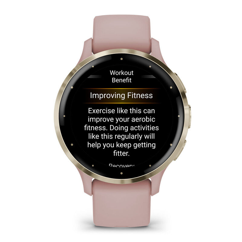 Venu 3S, ki je namensko opremljena z naprednimi funkcijami za zdravje in telesno pripravljenost ter omogoča telefoniranje in pošiljanje besedilnih sporočil1, ni samo pametna ura, temveč vaš osebni trener na zapestju, ki vam pomaga doseči vse zastavljene cilje.