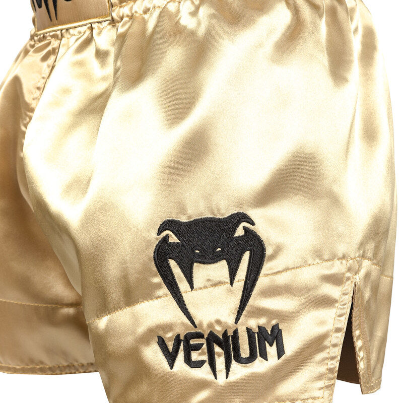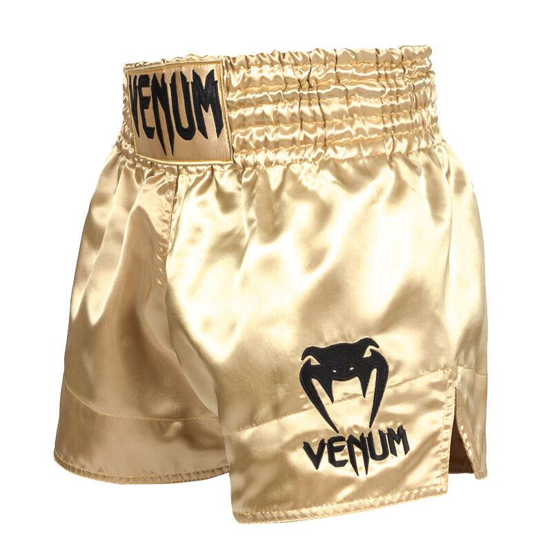 Venum Classic Muay Thai Kickboxing kratke hlače Gold Black so obvezna oprema za vse praktikante tajskega boksa, ki iščejo odlične kratke hlače!