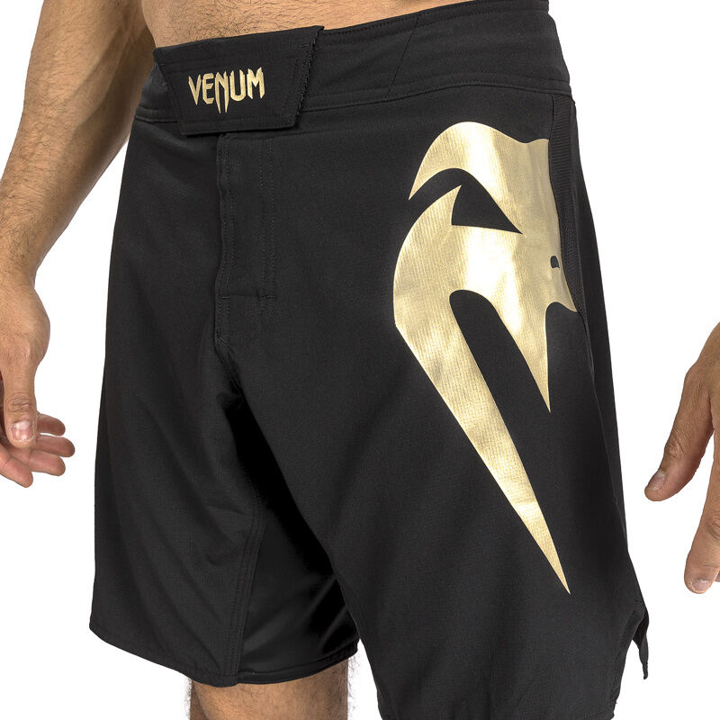 Predstavljamo najnovejši dodatek k Venumovi kolekciji ikončnih borbenih kratkih hlač. Venum Fight Shorts Light 5.0 Black Gold so lahki in fleksibilni, kar jih dela ključni kos v vsakem borbenem garderobniku.