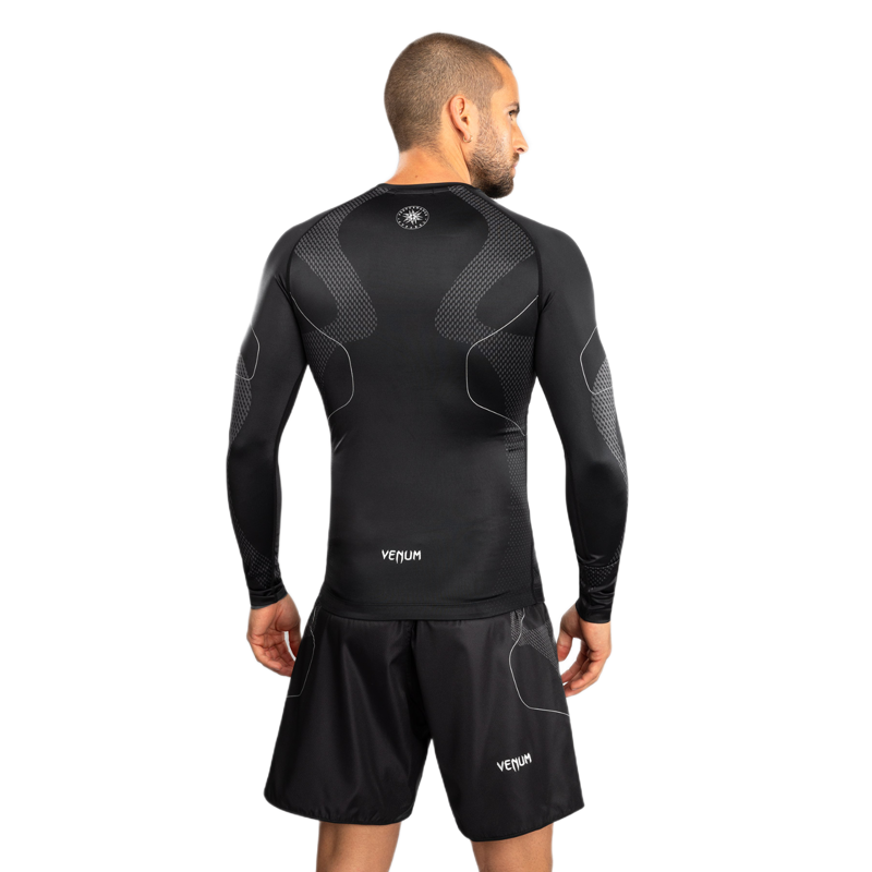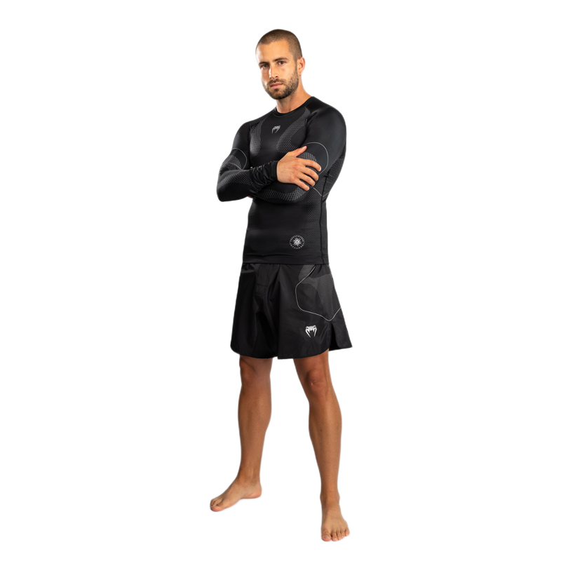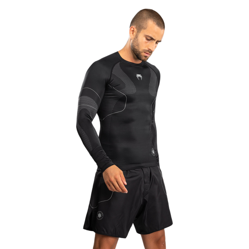 Venum Nexus Long Sleeve Rashguard je zasnovan za intenzivne treninge grapplinga, BJJ-ja in MMA. Njegov futuristični dizajn združuje funkcionalnost in slog, medtem ko kompresijski kroj nudi podporo med zahtevnimi treningi in lahko pomaga pri regeneraciji mišic. Poleg zaščite pred odrgninami in opeklinami zagotavlja popolno svobodo gibanja.