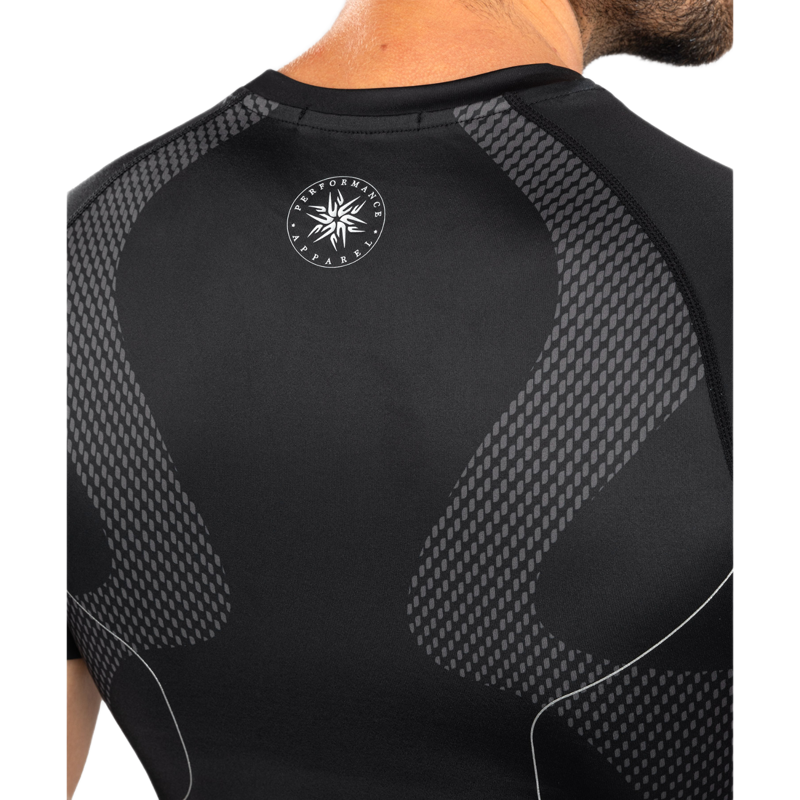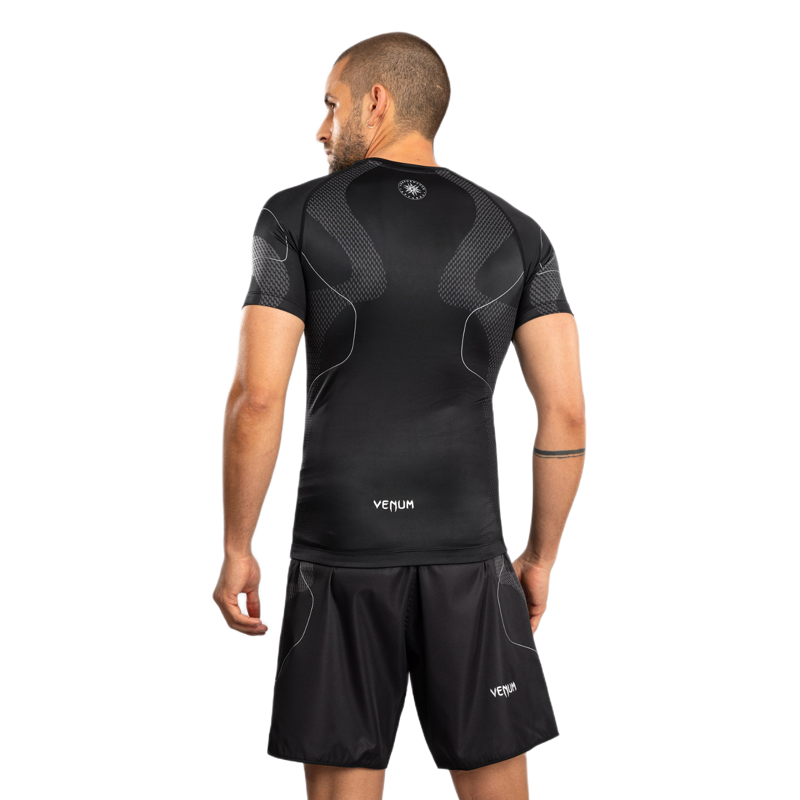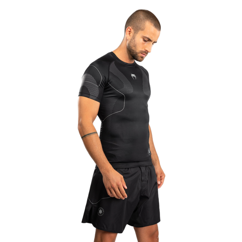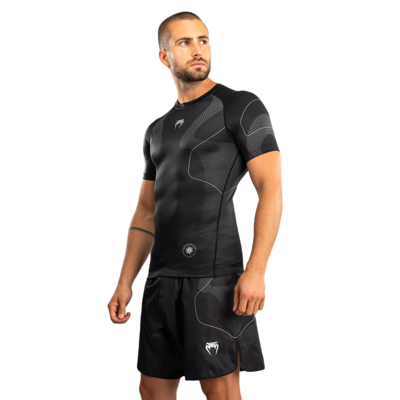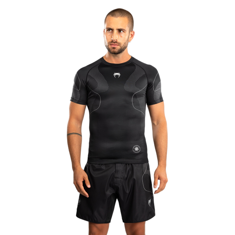 Venum Nexus Short Sleeve Rashguard je zasnovan za intenzivne treninge grapplinga, BJJ-ja in MMA. Njegov futuristični dizajn združuje funkcionalnost in slog, medtem ko kompresijski kroj nudi podporo med zahtevnimi treningi in lahko pomaga pri regeneraciji mišic. Poleg zaščite pred odrgninami in opeklinami zagotavlja popolno svobodo gibanja.