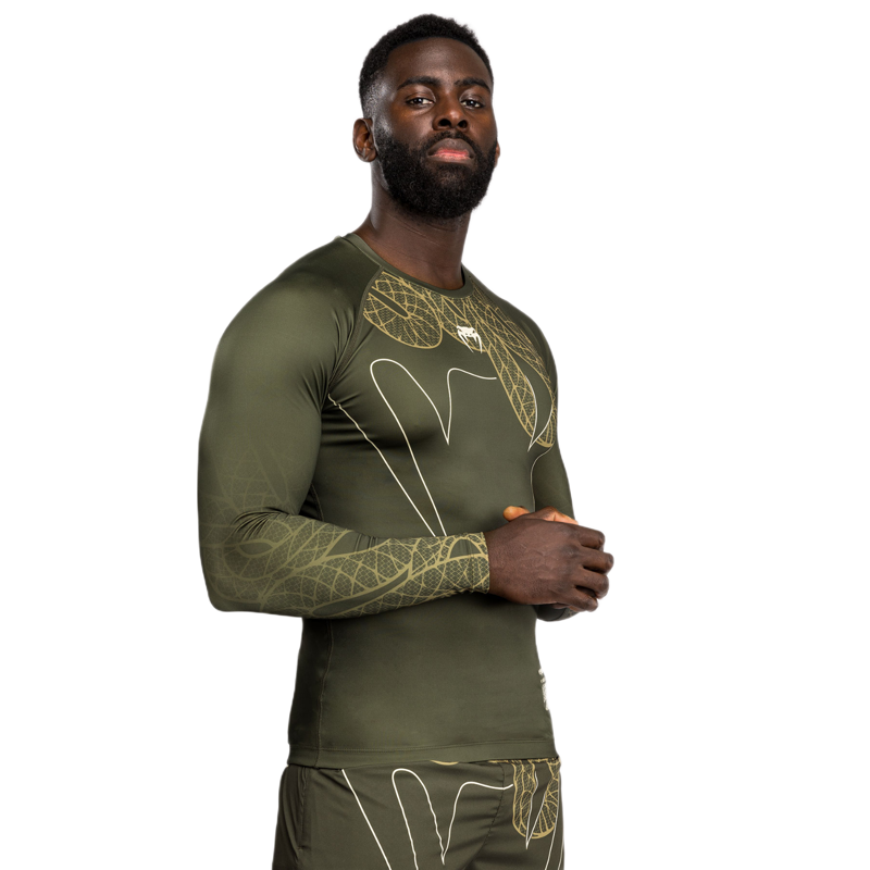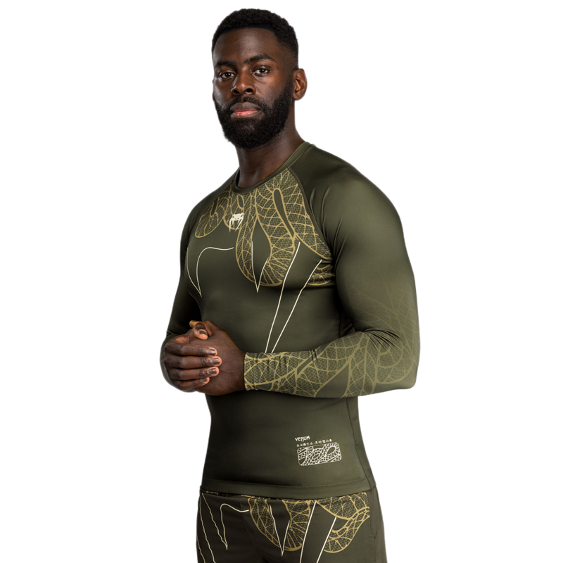 Kompresivni material z učinkom “druge kože” nudi podporo med intenzivnim treningi in lahko pripomore k regeneraciji mišic. Dizajn prikazuje tihi, a smrtonosni napad kače, ki stiska svoj plen. Nasprotniki – in tvoji izgovori – nimajo možnosti. Kombiniraj ta izdelek z drugimi kosi iz iste kolekcije za popoln outfit.