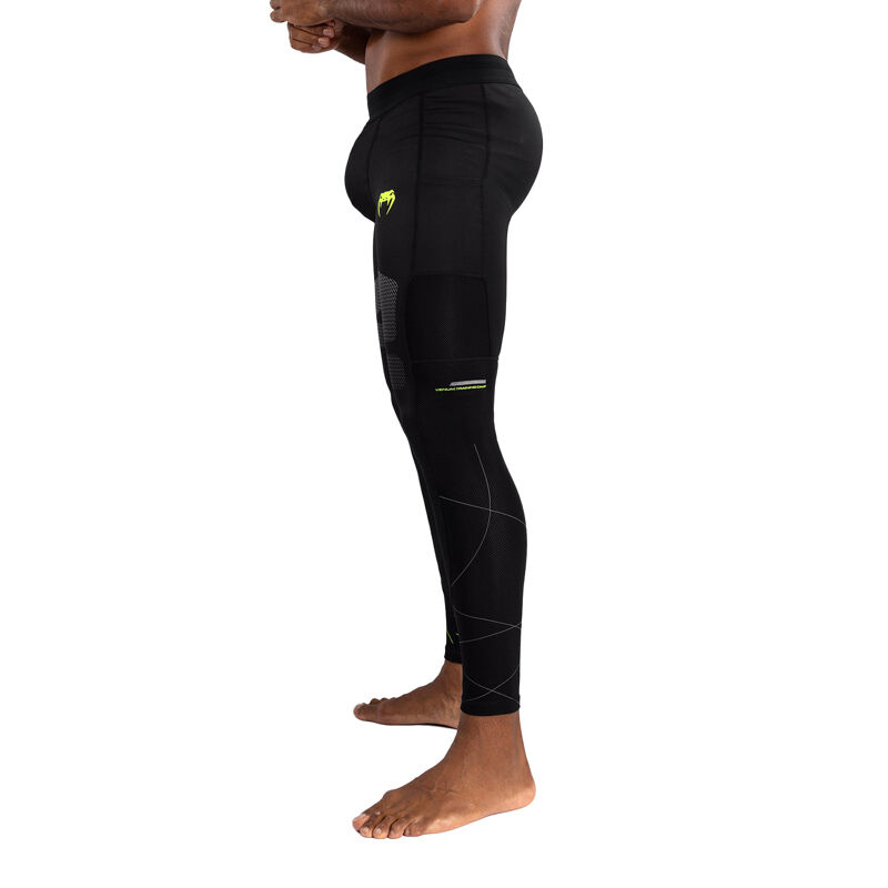 Spats pajkice iz kolekcije Venum Training Camp 4.0 so zasnovane za borce, ki potrebujejo popolno svobodo gibanja in zaščito med MMA in Jiu-Jitsu treningi. Kompresijska tkanina v kombinaciji z ojačanimi šivi ustvarja učinek druge kože, ki zmanjšuje trenje in tveganje za poškodbe, hkrati pa spodbuja boljšo cirkulacijo in hitrejšo regeneracijo mišic.