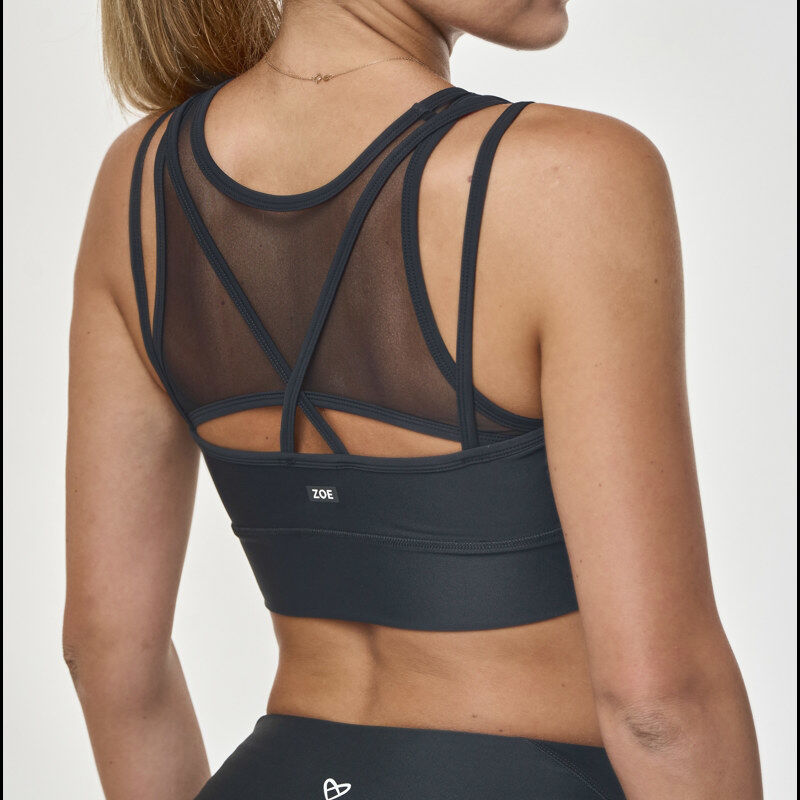 Glavna zvezda športnih nedrčkov Luxe zbirke! Edinstven dizajn Zila športnega nedrčka izvira iz kombinacije visokokakovostnega francoskega materiala in prefinjenega črnega mrežastega materiala. Poleg zanimivega detajla na sprednji strani je ta lahka mrežica uporabljena tudi na hrbtni strani za maksimalno zračnost, v kombinaciji s tankimi naramnicami pa prispeva k privlačnosti tega modela.