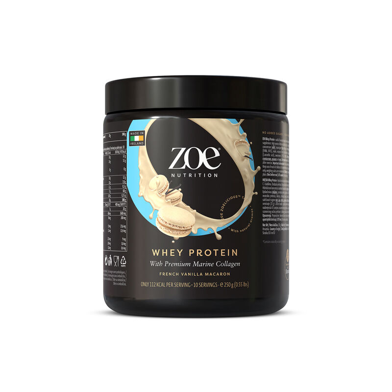 Natančno zasnovan za aktivne ženske, je zoe Nutrition Whey Protein narejen na osnovi hidroliziranega koncentrata in izolata sirotke, s primesjo ribjega kolagena, inulina, prebavnih encimov in vitamina C. Zoe Whey protein ima zgolj 112 kalorij na obrok, izjemno hitro se absorbira, telesu zagotavlja aminokisline in spodbuja sintezo beljakovin.